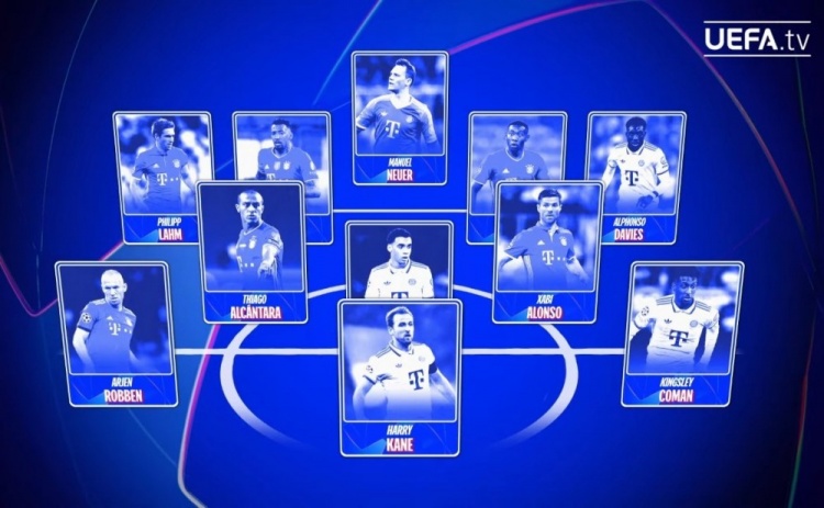 基米希选拜仁队友欧冠最佳阵:罗本凯恩科曼锋线,蒂亚戈在列