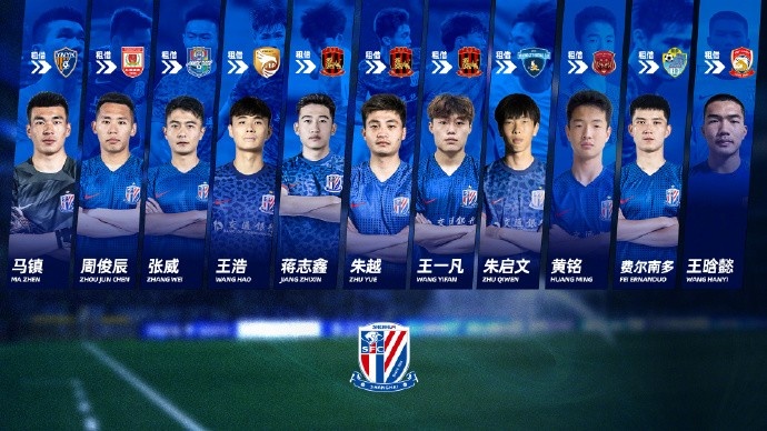 申花官方:何龙海转会加盟青岛西海岸;周俊辰、王一凡等11人外租